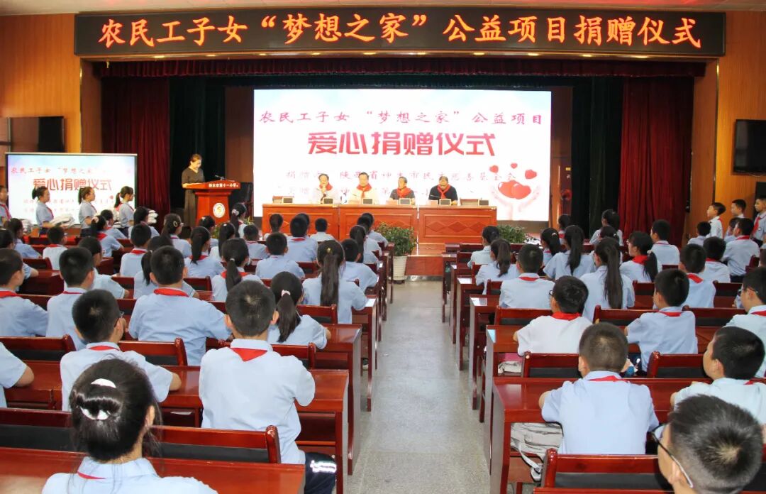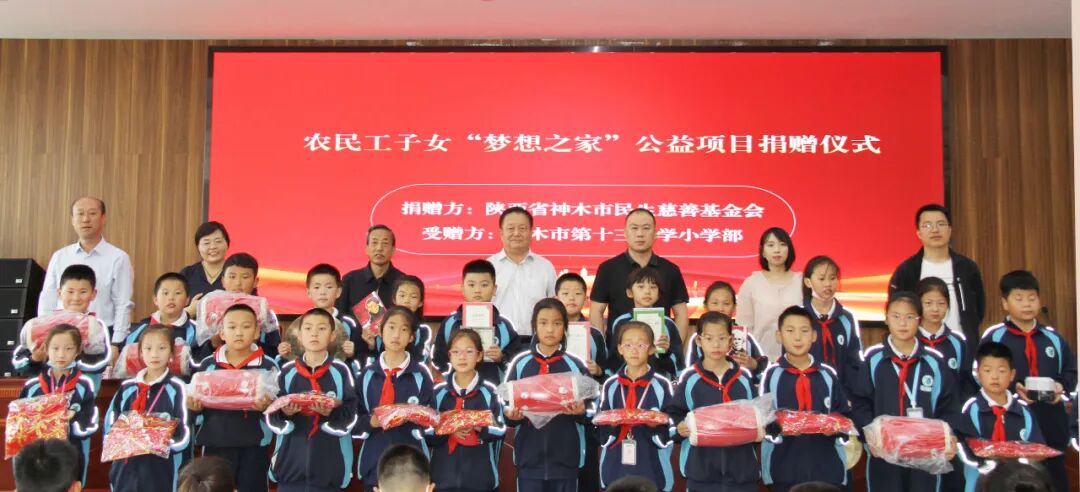 近日,神木市民生慈善基金会分别在神木市第一小学、第二小学、第十一小学、第十二小学、十三中举行农民工子女“梦想之家”公益项目合作协议签订仪式并发放社团物资用品。