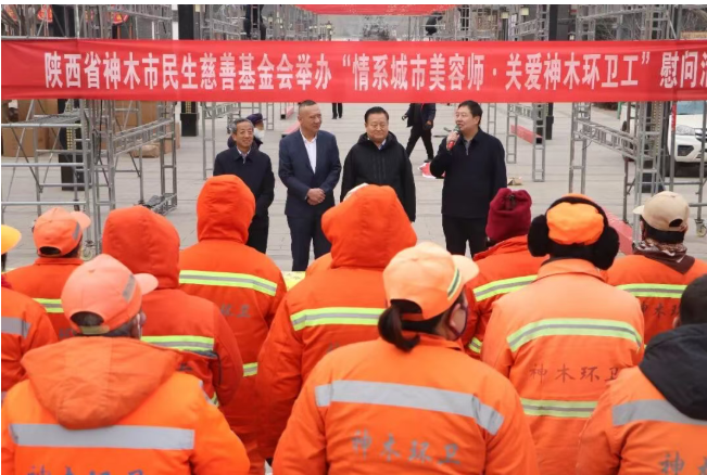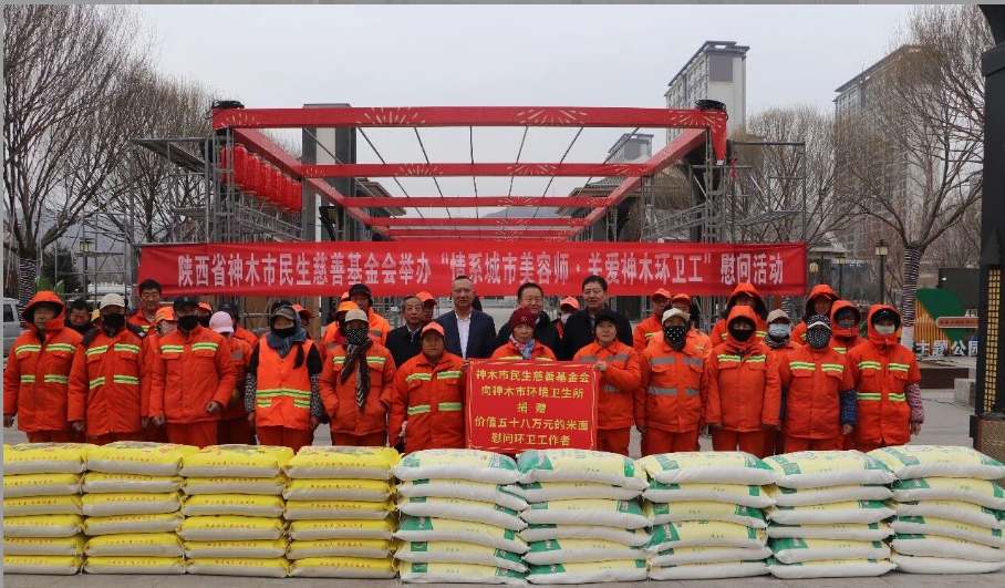 新春将至,年味渐浓。为致敬坚守岗位的城市一线环卫工作者,传递社会关怀与新春暖意,近日,神木市民生慈善基金会举办“情系城市美容师 关爱神木环卫工”慰问活动,向神木市环境卫生所捐赠2237份价值58万元的米、面等生活物资,全覆盖慰问城区全体环卫工人,为默默奉献的“城市美容师”送上新春祝福与爱心关怀。