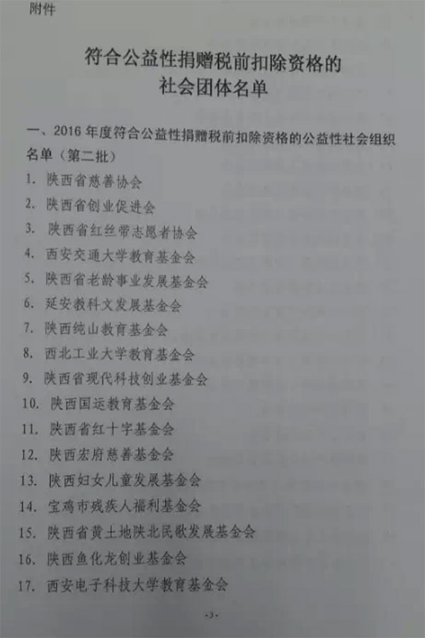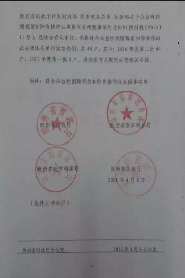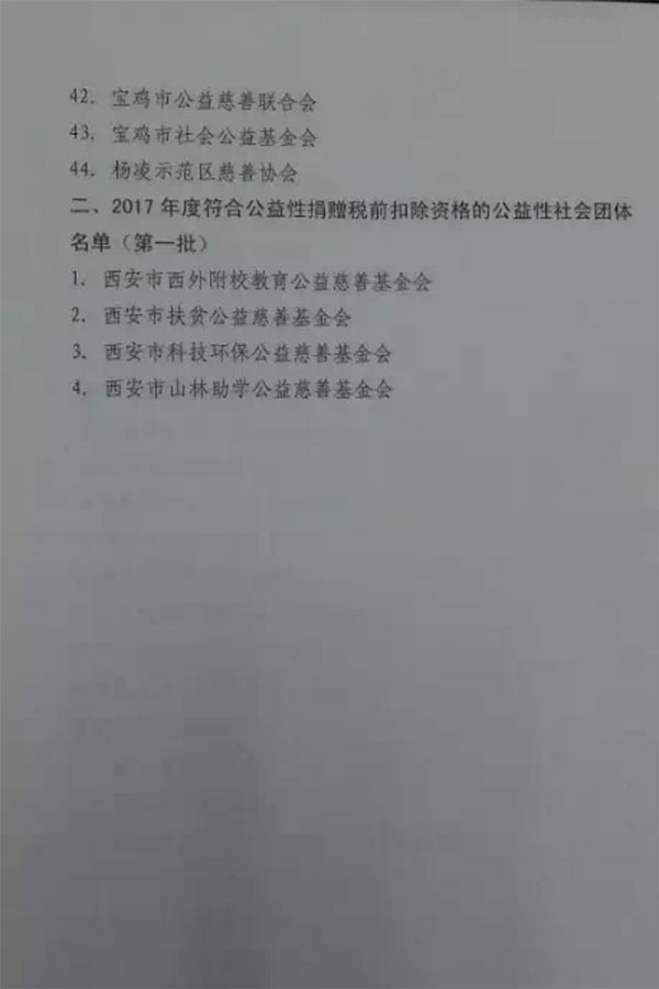 陕西省公布48家具有公益性捐赠税前扣除资格的社会组织名单