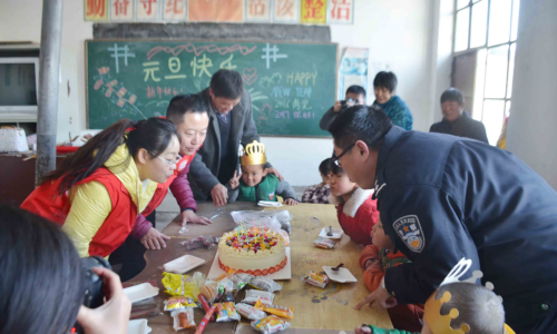 此外,义工们还为小朋友们买了一个大蛋糕和很多零食,义工们一起为他们举办了一场特殊的元旦晚会,小朋友们渐渐不再那么约束,在老师的带领下和志愿者们打成一片,志愿者们喂小朋友们吃蛋糕,一起唱歌,安静的教室渐渐沸腾了起来。