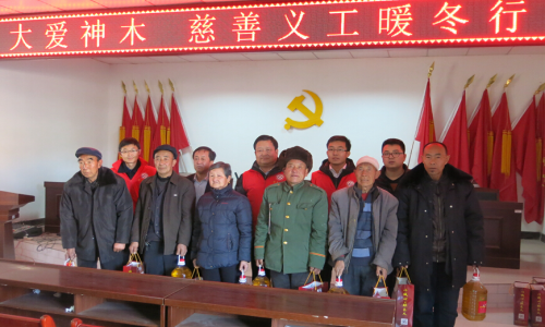 1月17日,神木县民生慈善基金会义工服务总队、解家堡镇义工服务分队、神木县城古天汉坊有限公司联合举办以“大爱神木·慈善义工暖冬行”为主题的暖冬慰问活动,基金会为空巢老人提供60份米面油慰问品,神木县城古天汉坊有限公司为每位空巢老人赠送了该公司生产的美酒两瓶,对联、台历等。