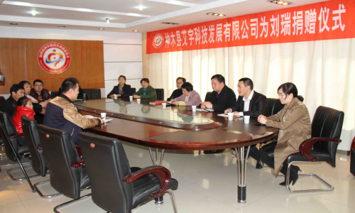 3月13日,神木县民生慈善基金会举行了艾宇科技发展有限公司为刘瑞捐赠仪式。捐赠仪式上,爱心企业家艾宇为困难家庭听障儿童刘瑞捐赠了1万元现金,作为她康复期的费用。