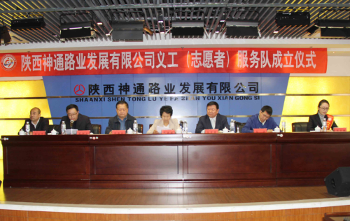 义工(志愿者)服务队10月14日,陕西省神木县民生慈善基金会陕西神通路业发展有限公司义工(志愿者)服务队成立仪式在陕西神通路业发展有限公司七楼会议室举行。县民生慈善基金会理事长焦调瑜、秘书长刘新民,陕西神通路业发展有限公司副董事长、总经理高建雄,,基金会部分工作人员和陕西神通路业发展有限公司全体义工参加了成立仪式。