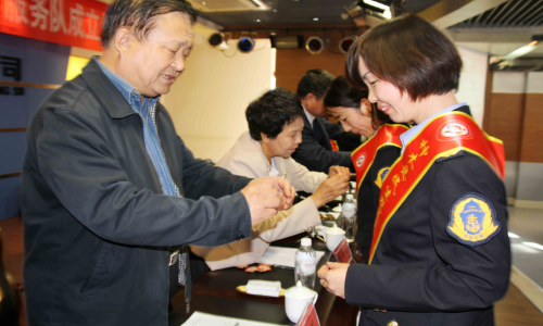 成立仪式上,基金会秘书长刘新民同志宣读了《关于贺亚婵等同志任职的通知》,理事长焦调瑜同志为义工服务队授旗,队长贺亚婵带领义工进行宣誓,副队长宋燕妮同志宣读了陕西神通路业发展有限公司义工(志愿者)服务队工作职责》。主席台就坐的领导为义工颁发了徽章。